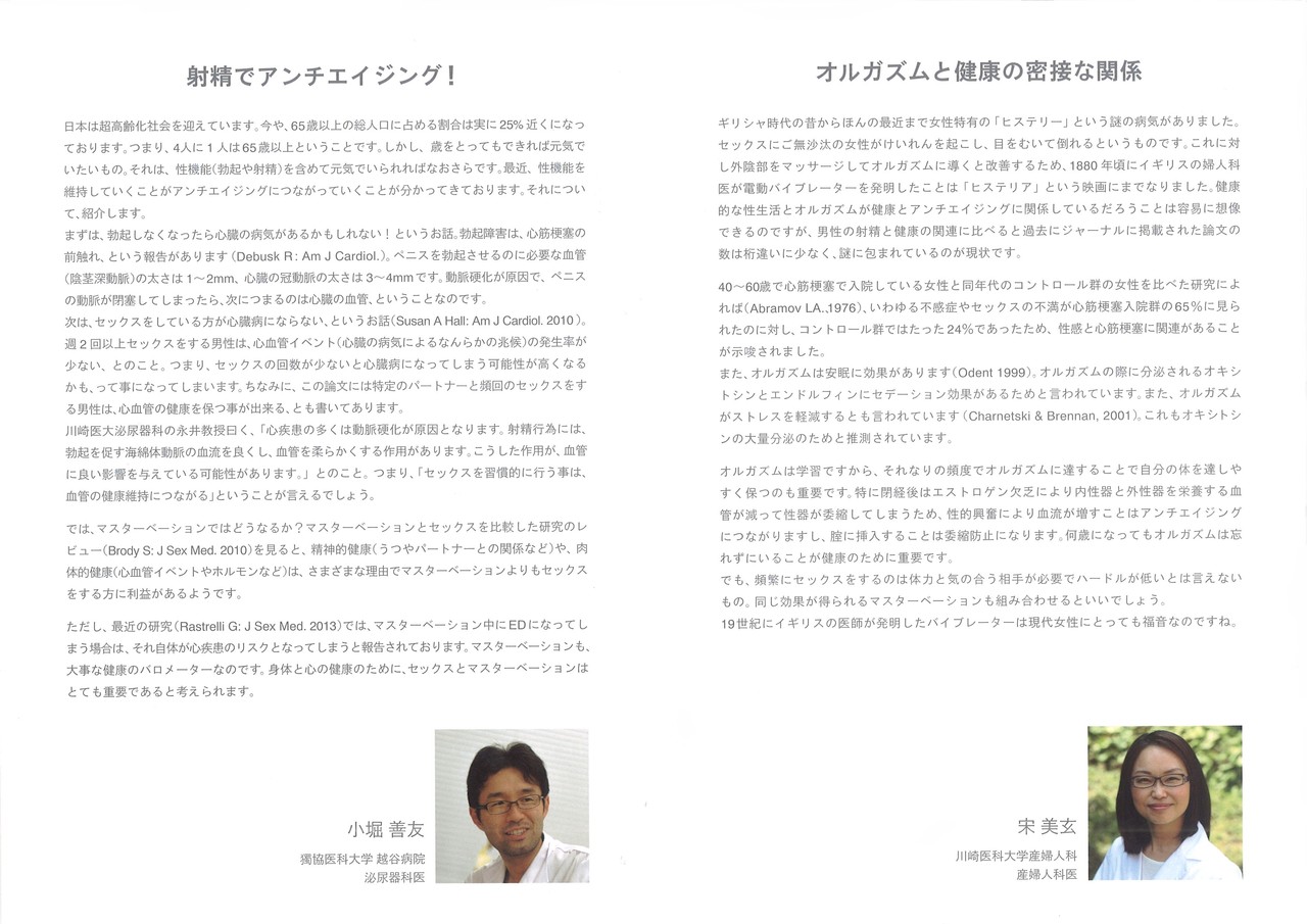 マスターベーションと健康、アンチエイジングへの効果について書かれた冊子も、お配りしました。