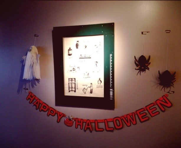 うちのリビングでも先週くらいから、お化けやら、蜘蛛やら、コウモリやらがぶら下がっています。