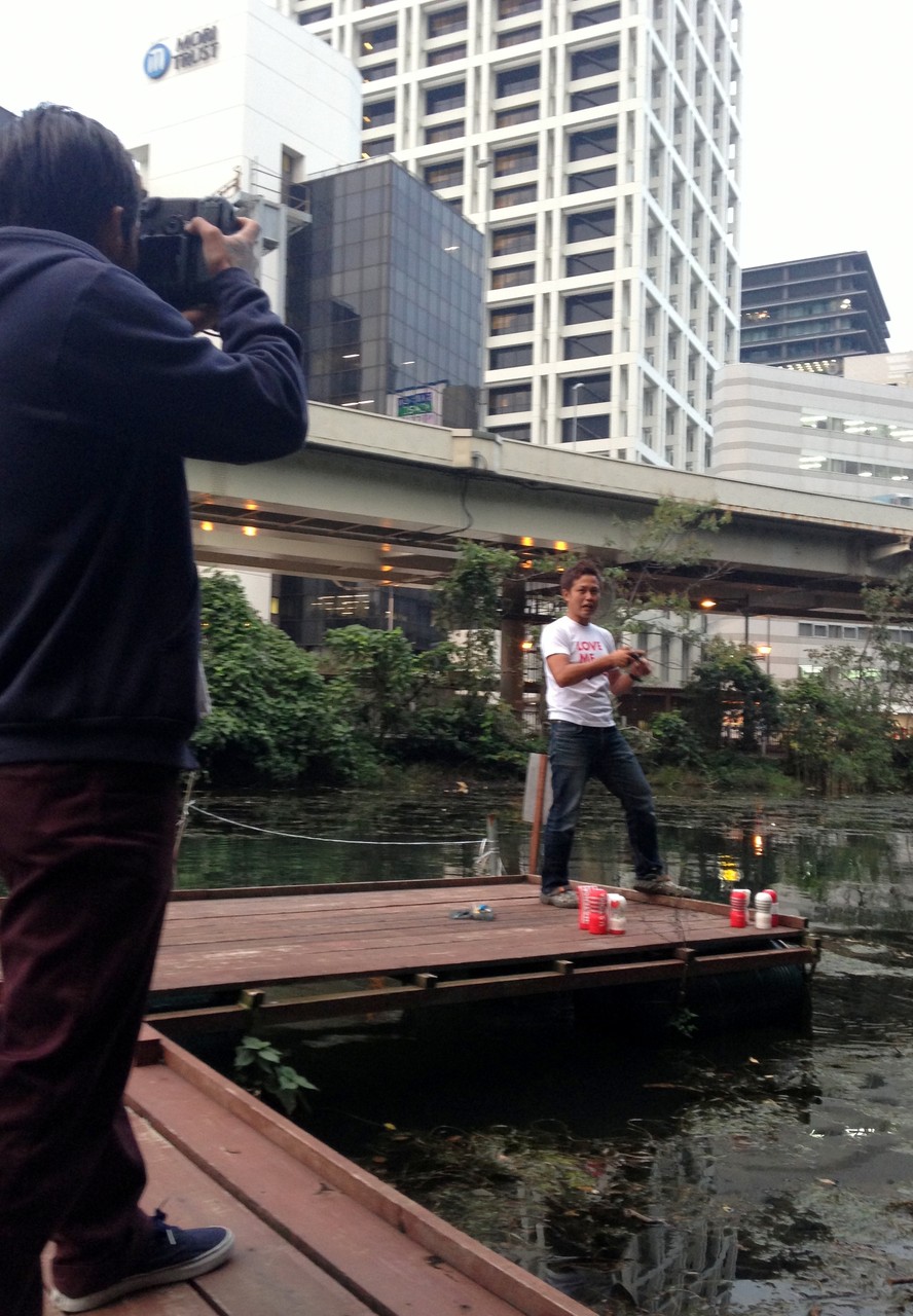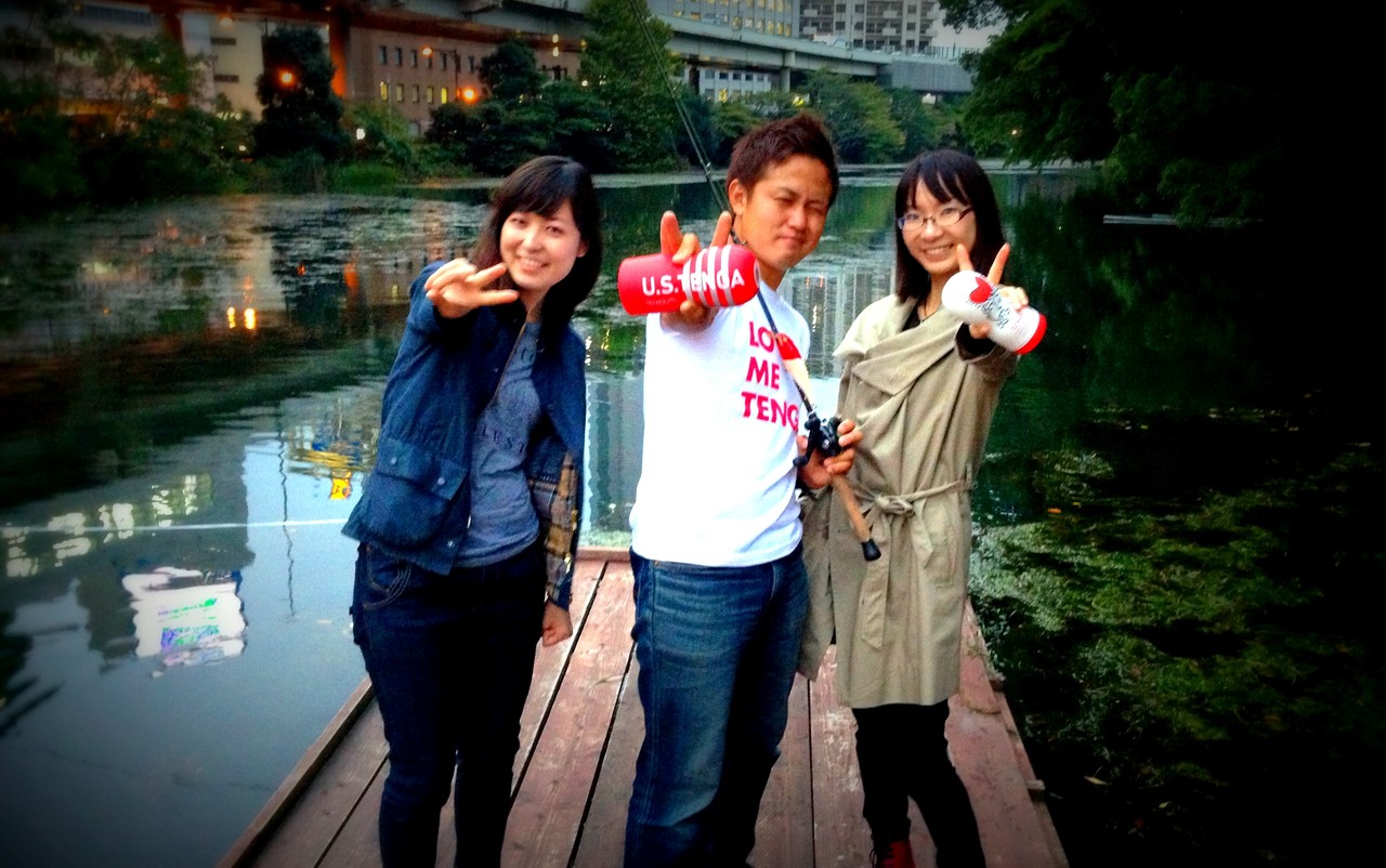 撮影終了後、釣り堀のスタッフさんに声をかけられ、TENGAをルアーになまずを釣る方法を