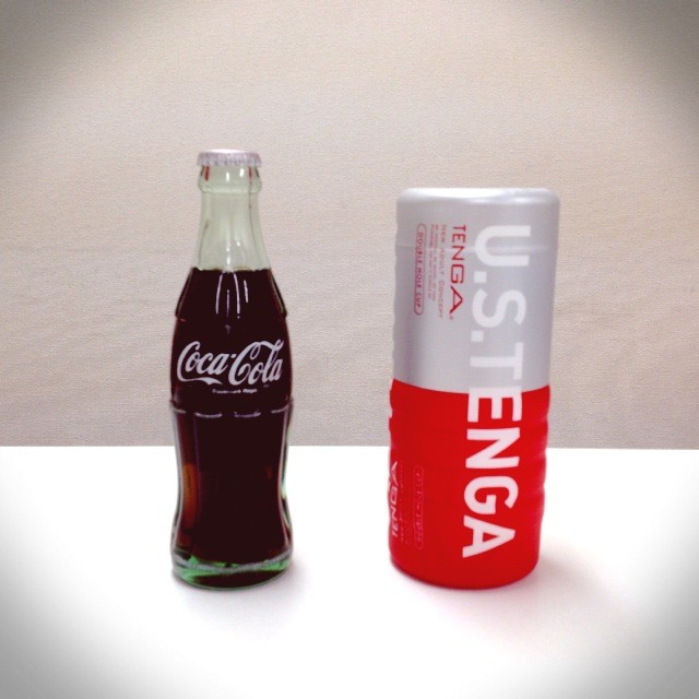 コーラと並べるとこんな感じ。コーラの瓶って意外と背が高いんですねぇ。