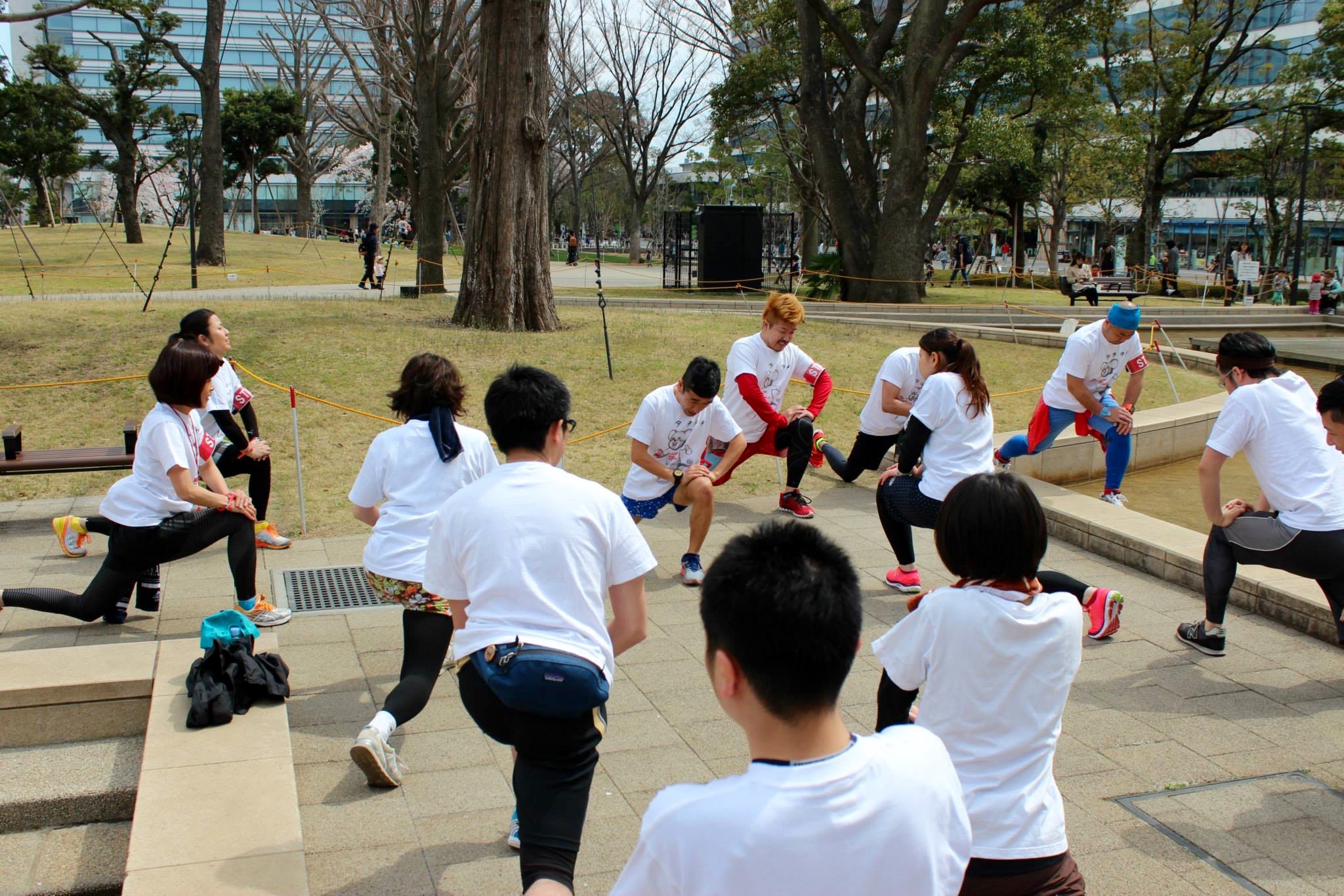 まずは猫ひろしさんと一緒に、みんなで準備運動。