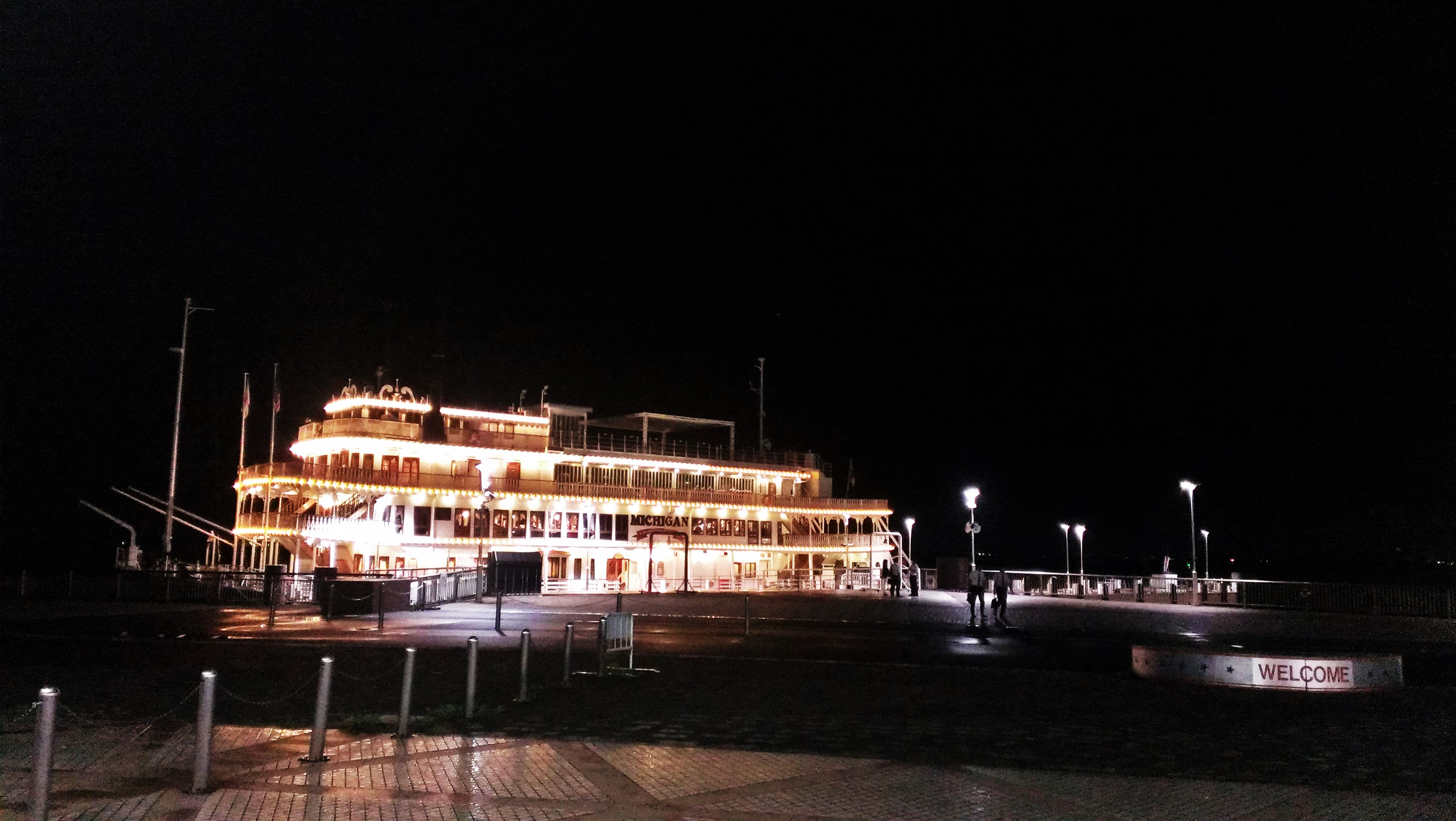 「サプライズがあります!」という声と共にデッキに出るとカウントダウンが始まり、まさかの夜空に大輪が・・・!!